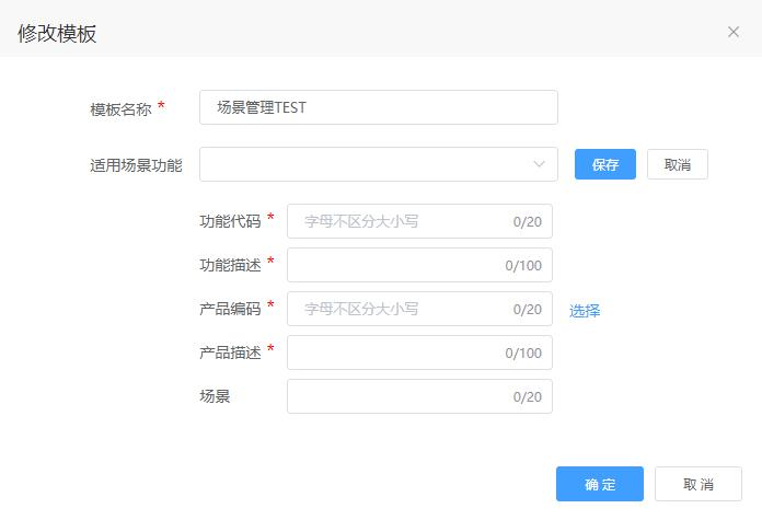 功能代码、描述,产品编码、描述以及场景描述。场景功能自定义设置同新建场景