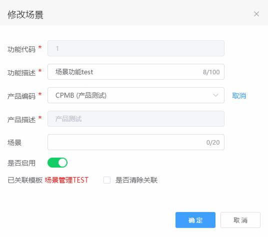所示),可进行修改功能描述、场景描述或更改关联产品、启用状态、清除关联模板等操作。