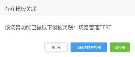 所示)。单击〖取消〗按钮,场景功能未被停用,单击〖清除关联并停用〗按钮,场景功能