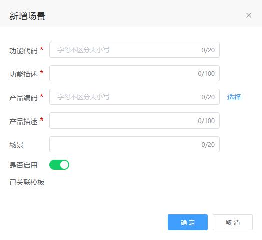 1、 若模板已关联该场景功能,则该场景功能编辑窗口显示已关联的模板。