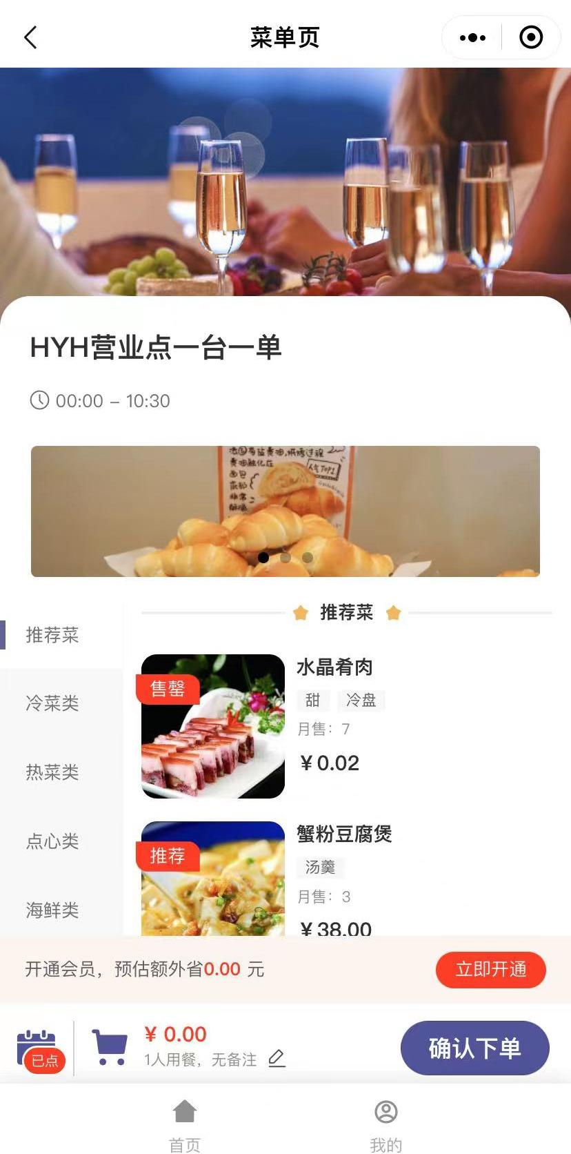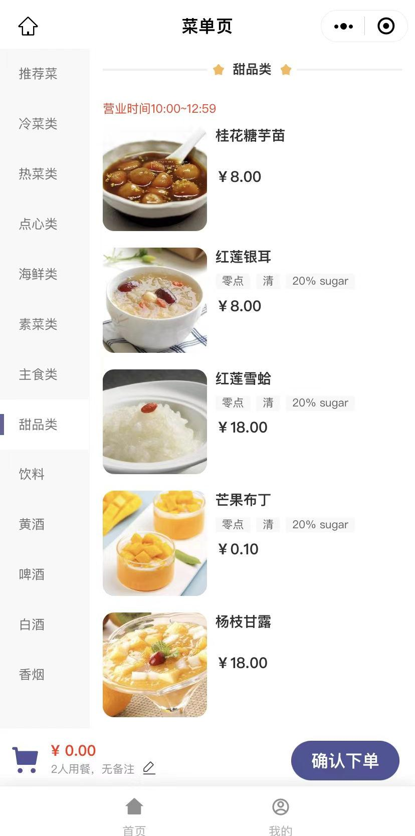6、 扫码通显示正常的零点的菜谱,包含中餐套餐、临时菜。临时菜的名字需要到 PMS