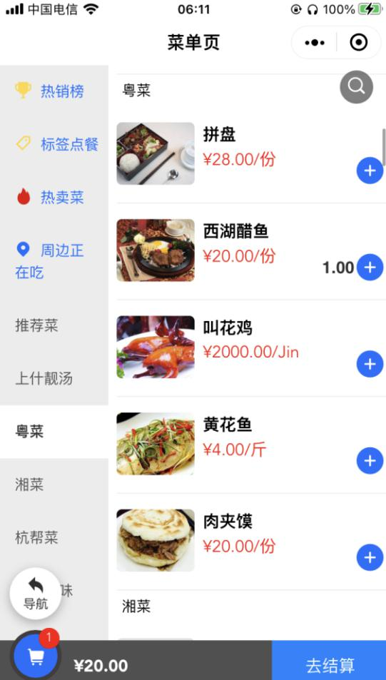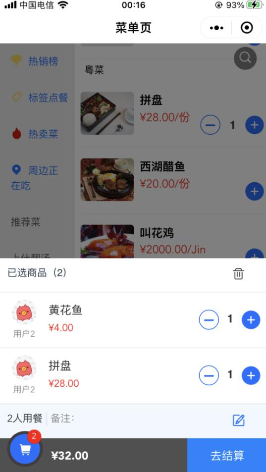 的菜品总价及点菜数量。(如图 2.1.1.1-1 所示)