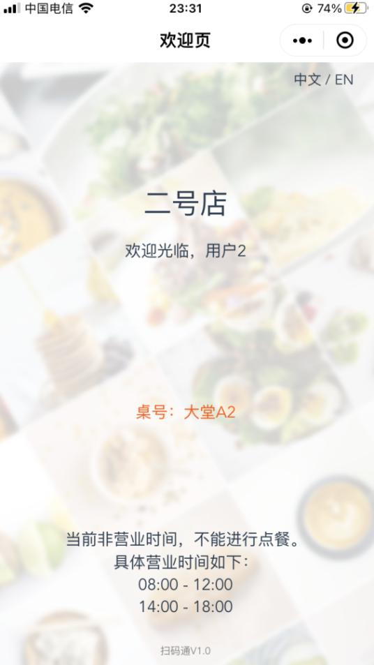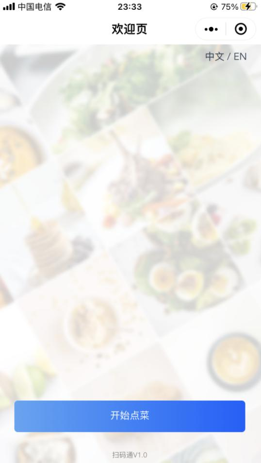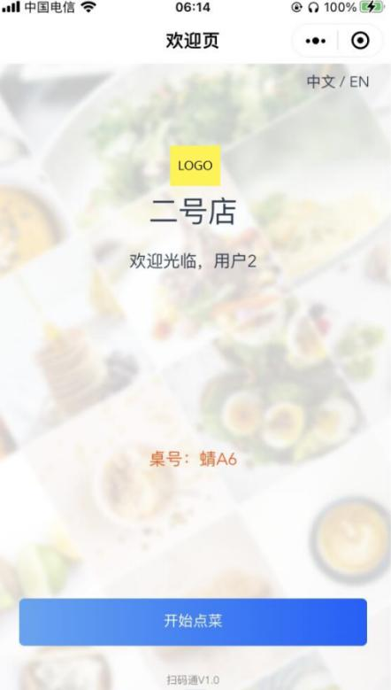 (1) 、通过扫描桌号二维码即可进入扫码通首页。