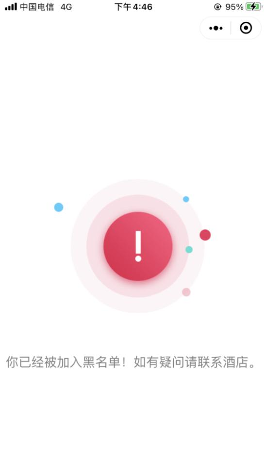 4、 若用户在黑名单列表里,进行扫码后会提示黑名单用户,无法进入到扫码通页面(如图 2.1.1.1-8 所示)。