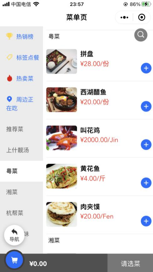 (4) 、点击菜品〖+〗按钮,使之加入购物车。