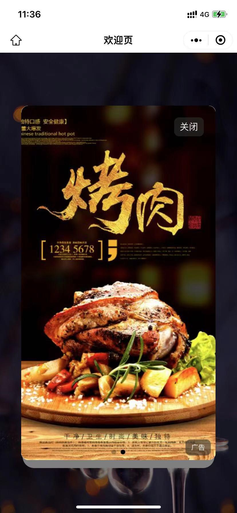 入欢迎页,显示酒店信息、桌号信息等(如图 2.1.1.1-2 所示)。