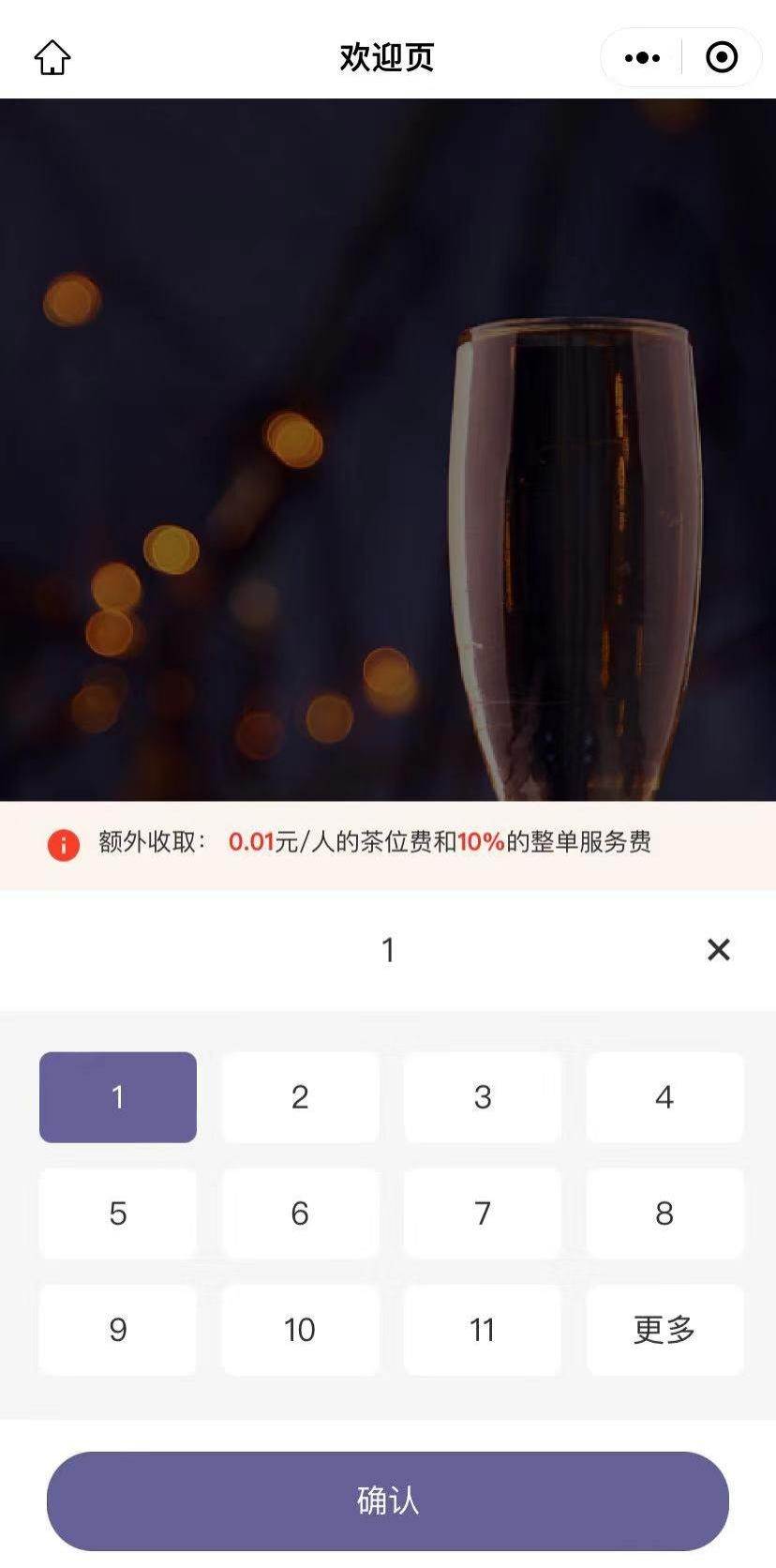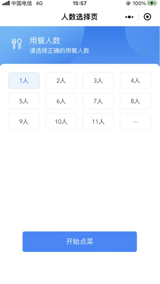 (2) 、点击〖开始点菜〗按钮,若营业点开启〖必选用餐人数〗,跳转到人数选择页;