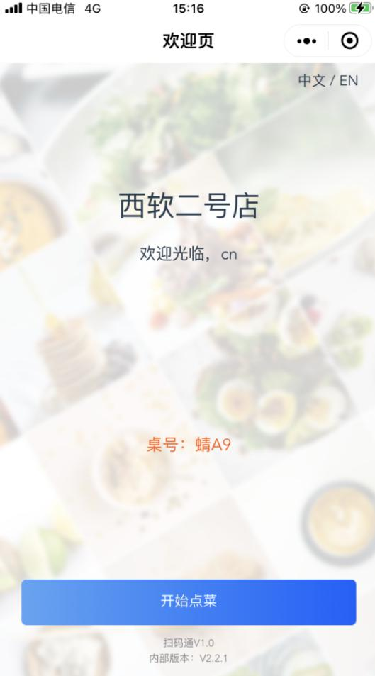 (1) 、微信通过扫描桌号二维码即可进入扫码通首页。