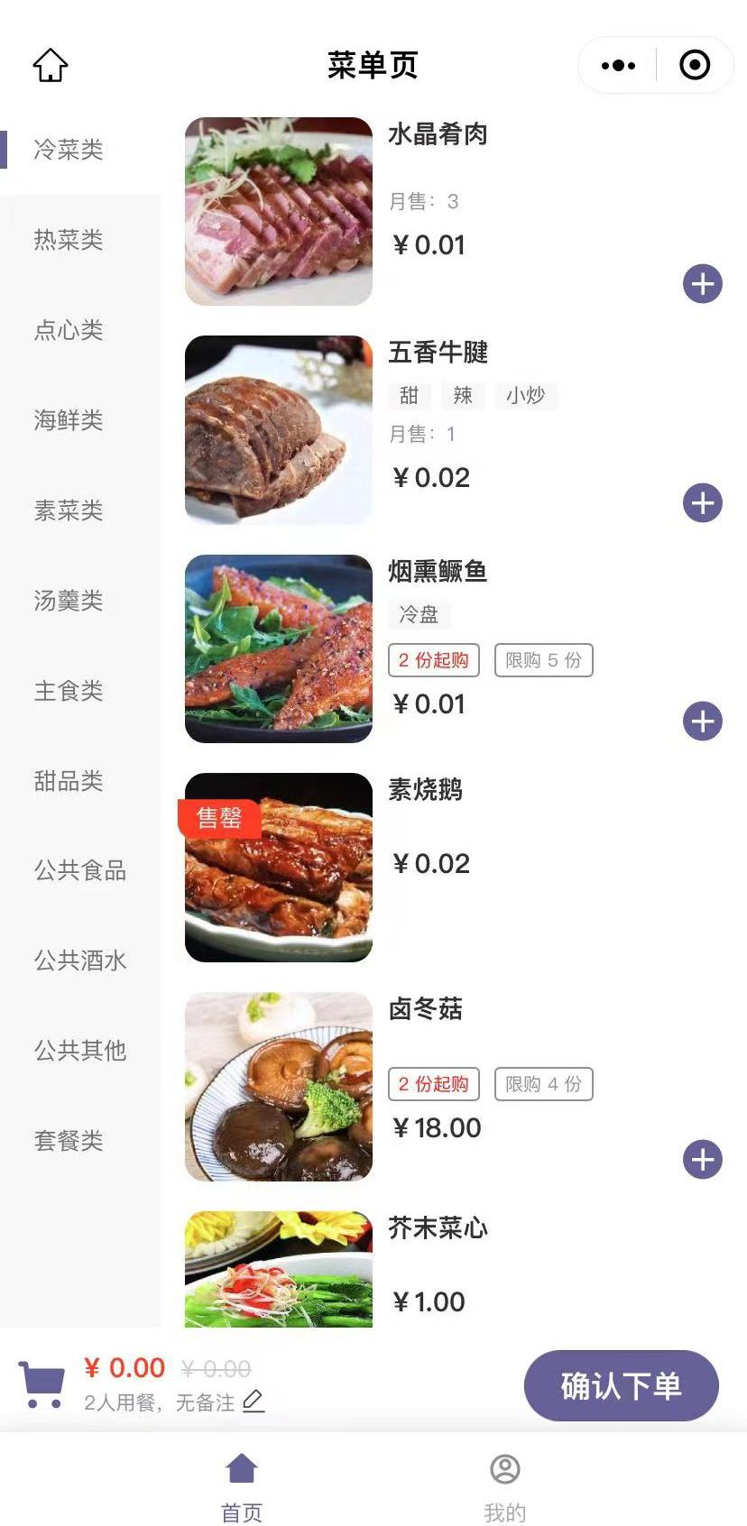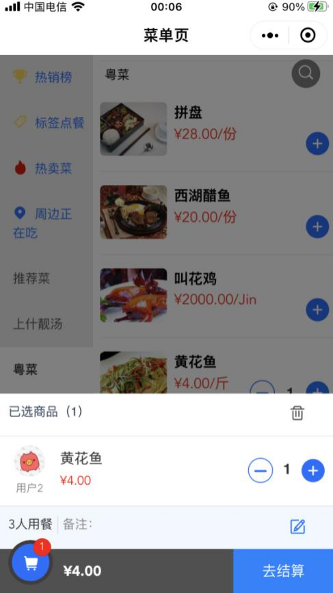 (3) 、选择人数后点击底部〖开始点菜〗即可跳转到点菜界面。