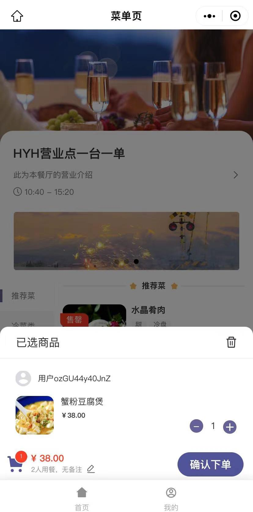 (5)、加入菜品至购物车后,点击〖确认下单〗,跳转到『待支付』页。