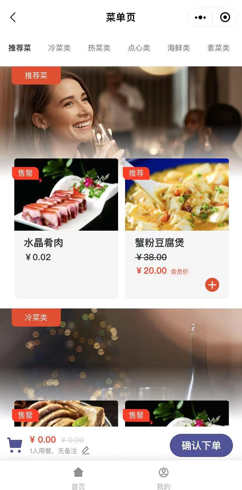 (3) 、选择人数后点击底部〖开始点菜〗即可跳转到点菜界面。