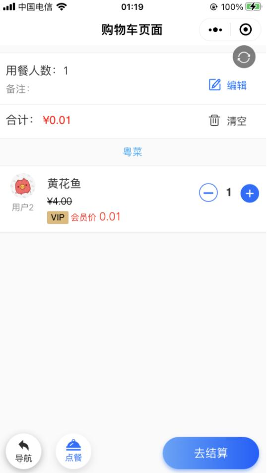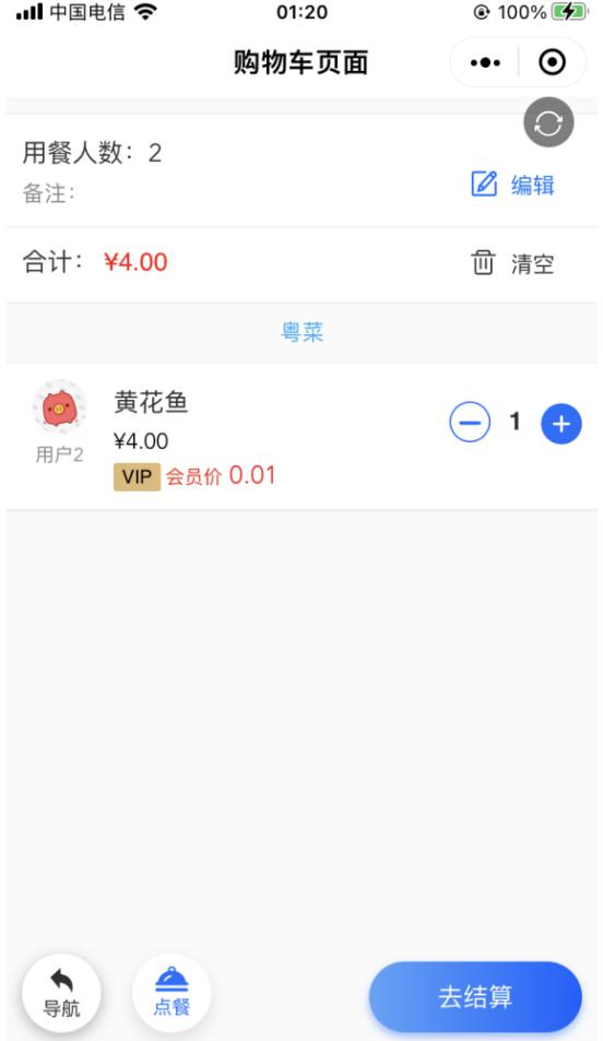 b. 绑定了会员卡,菜品列表显示会员价和原价,原价被删除(如图 2.1.1.2-4 所示)。