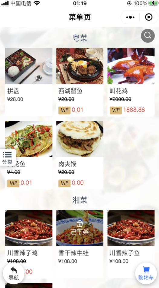 (4)、点击菜品〖+〗按钮,使之加入购物车。购物车与外卖样式点菜中的新 UI 开启用