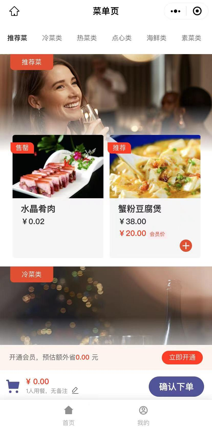 b. 绑定了会员卡,无会员价的菜品只显示原价。有会员价的菜品显示会员价和原价,且原