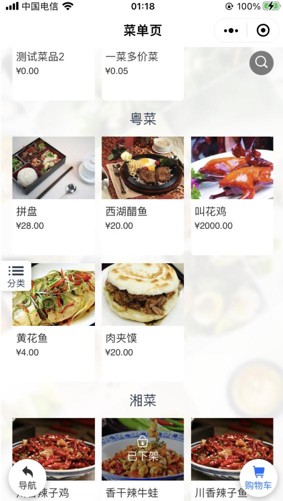 1、 新 UI 经典样式点菜的点菜页,无营业点介绍、当前可用餐时间段、轮播图信息显
