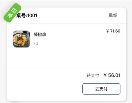 桌号、菜品信息、待支付金额,其中菜品信息默认显示一道,可通过点击“已折叠其余 n