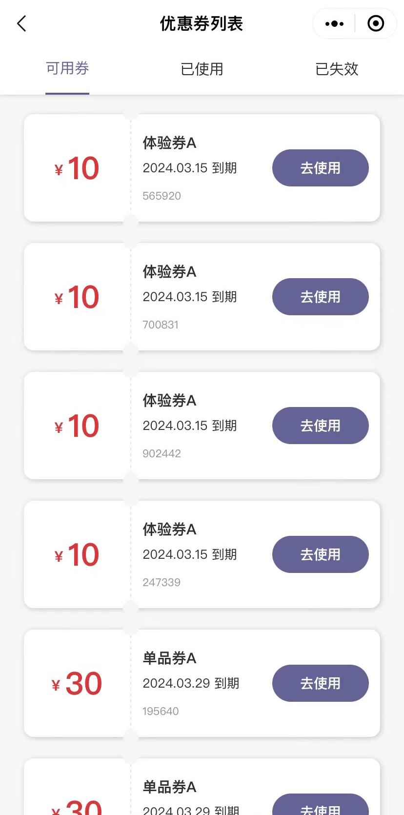 用、已用、已失效券。