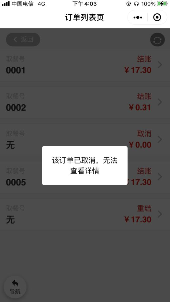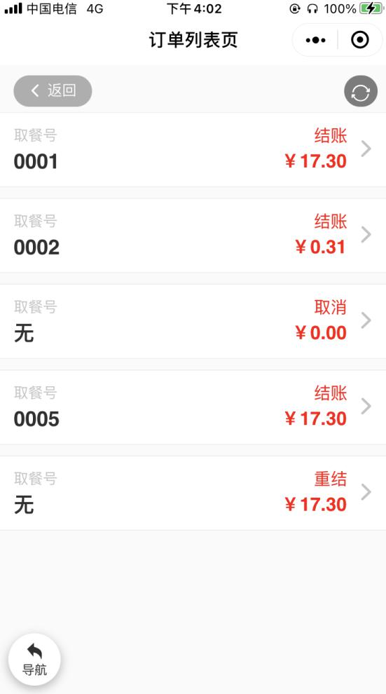 扫码的所有状态的订单信息,包括取餐号、状态以及订单金额。