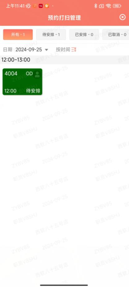 4、 当扫码通预约成功后,掌讯通再进入『预约打扫管理』窗口可查看客人已自主预约