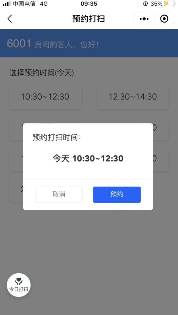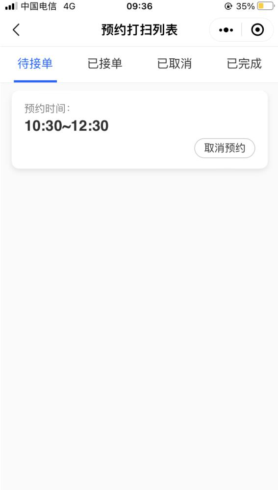 3 预约后可点击【今日打扫】查看接单情况以及进行取消预约操作。(如图 2.3.4-3所示)