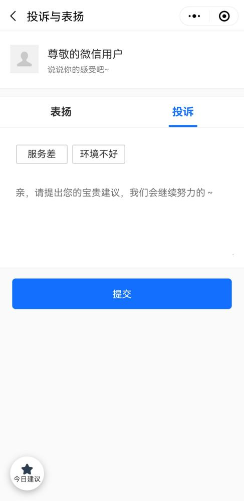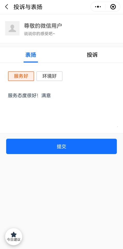 该功能作用于住店客人对酒店的投诉与表扬。首页点击【投诉与表扬】可进入『投诉与