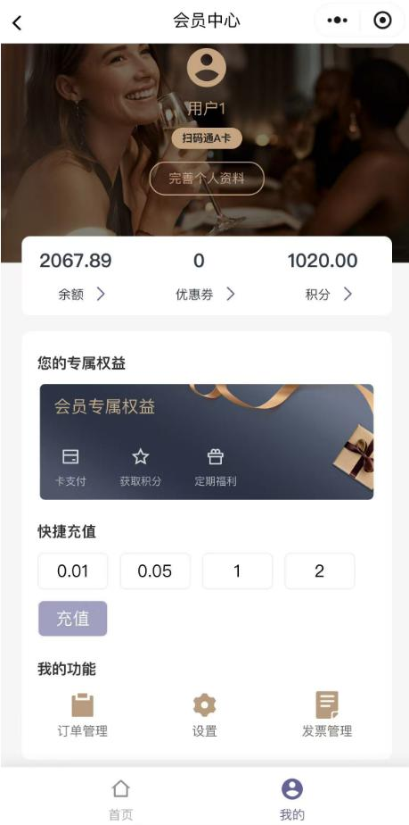 UI 我的页面不显示会员模块。该模块能够实现会员卡绑定、注册、会员信息修改、会员卡