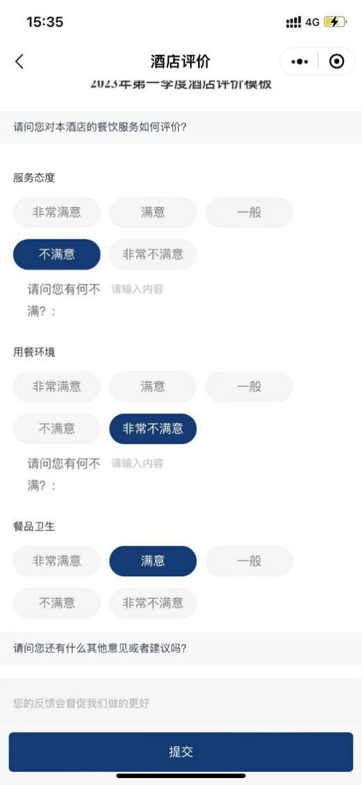 酒店可自定义评价表的样式。(详见下一篇:1.7.2. 模板编辑)