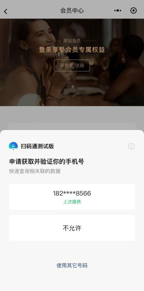 (1) 、单击〖请登录/注册〗按钮,自动获取当前微信/支付宝绑定的手机号。(如图 2.3.8.1-6所示)