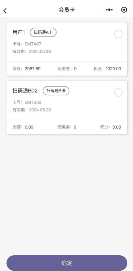 1、 当拉取的手机号下存在多个会员卡时可在『会员卡绑定』页面进行选择,会员中心