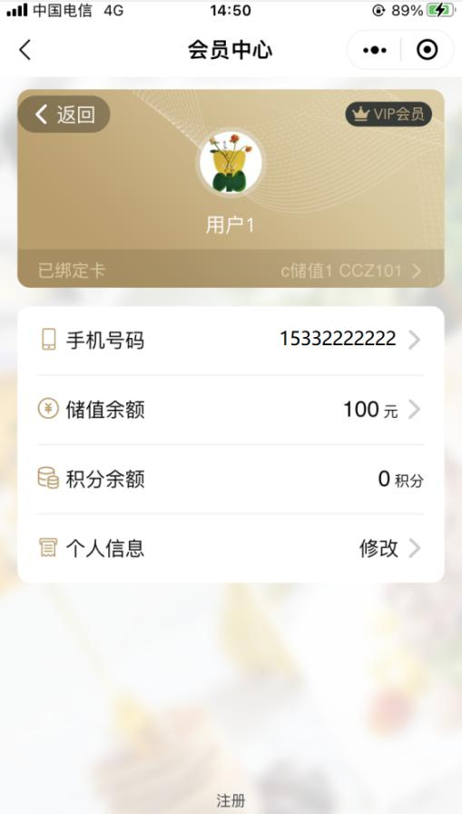 图 2.3.8.2-4 绑定会员卡后会员中心显示注意: