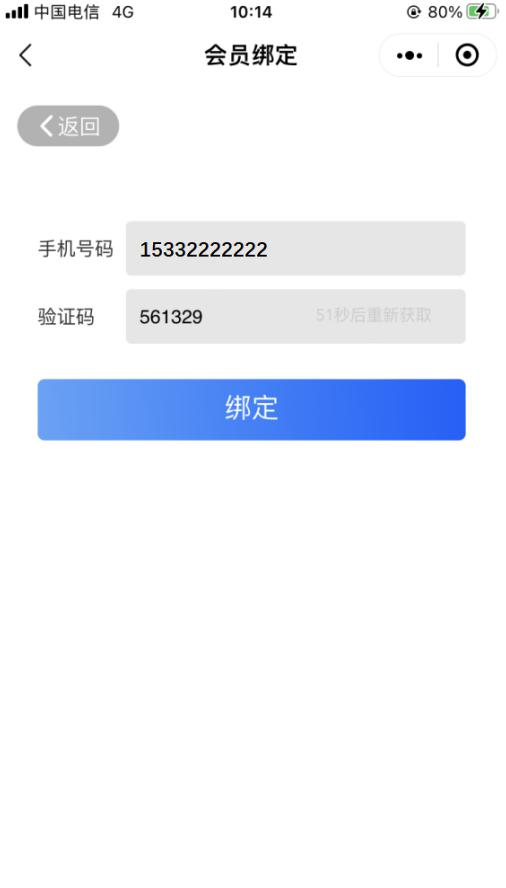 2、 已绑定会员卡时,点击手机号,能够再次进入『会员绑定』页面,能够切换手机号。