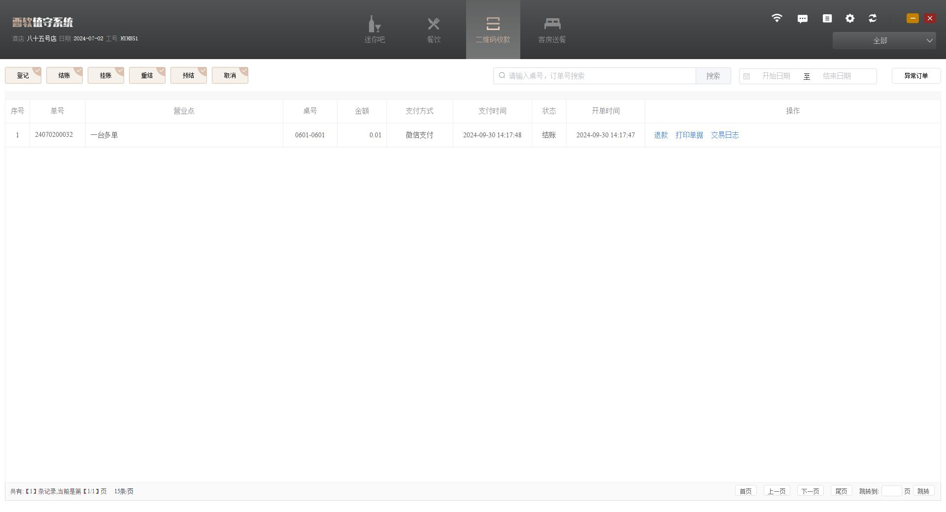 选择二维码收款模块,可选择查看各状态的二维码收款订单并对其进行相关操作(如图2.5.8-1 所示)。