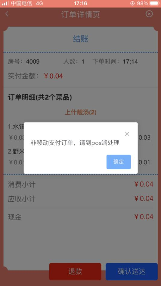 退款:如果客人点餐结账之后不想要了,或是菜品有问题需进行退款的,服务员可通过