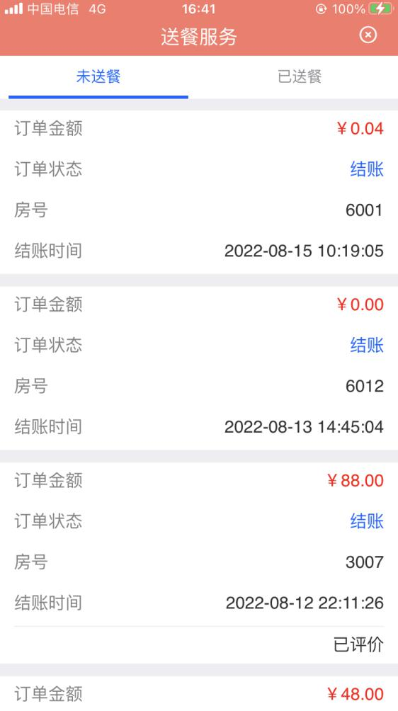 2 客人支付成功后未做评价的在未送餐标签中不显示,已送餐标签显示未评价和已评价字样。