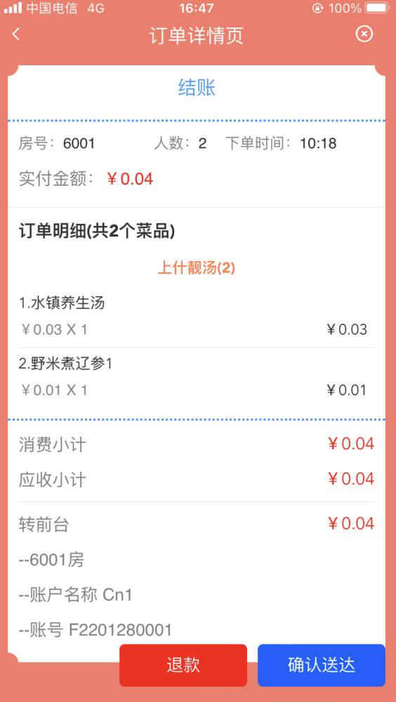 显示该订单,金额也原路返回给客人(如图 2.6.1-4 所示)