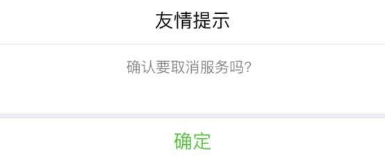 点击〖取消服务〗按钮,提示确认要取消服务,点击〖确认〗,服务取消成功,跳转到