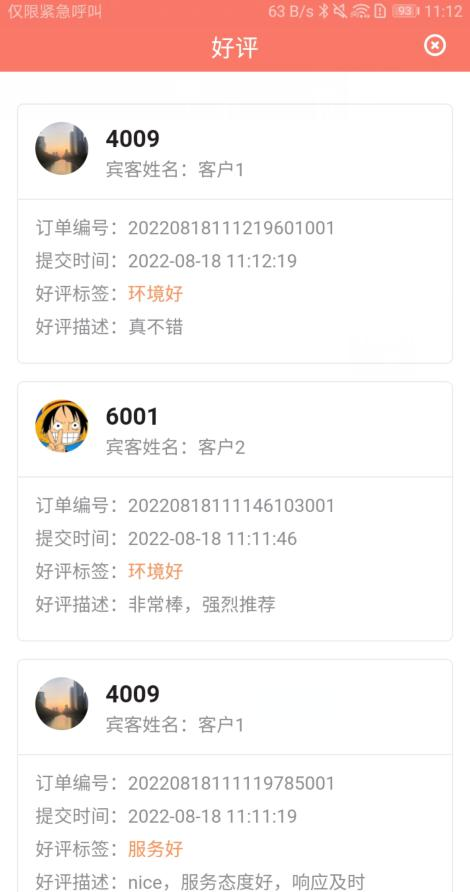 首页点击〖好评〗,进入好评页面,可查看今日所有好评(如图 2.6.5-1 所示)