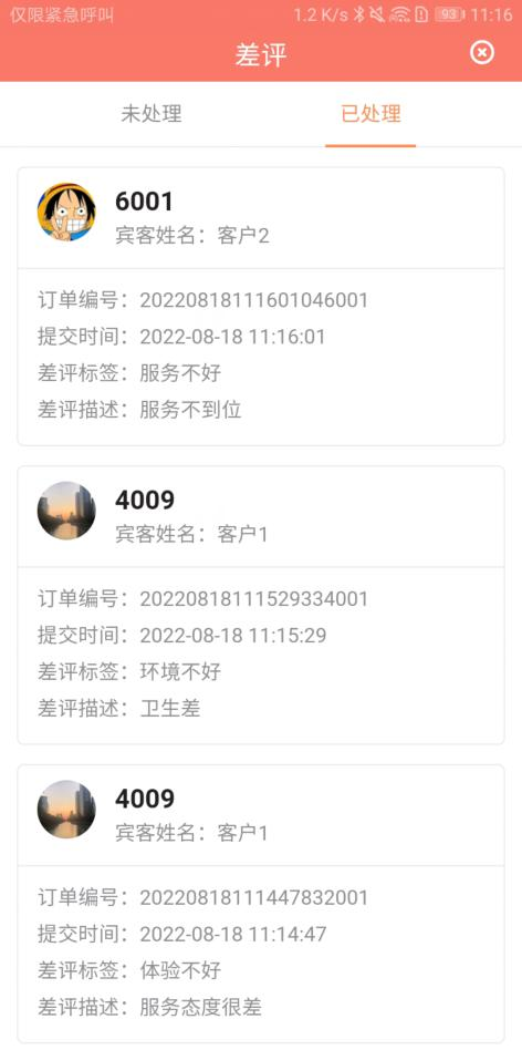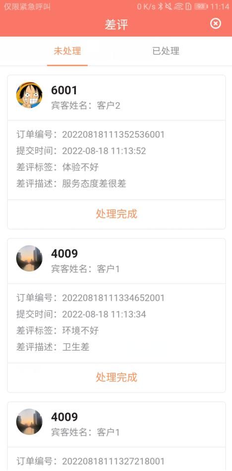 看所有未处理和已处理的差评(如图 2.6.6-1 所示)