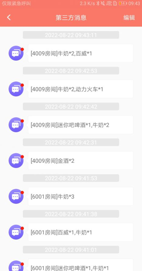 (2) 、客房角色已排班且负责该楼层的工号将收到迷你吧的消息。