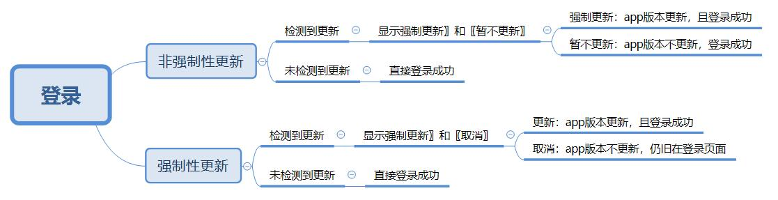 版本更新:登录时,若未检测到新版本,不会跳出版本更新,新版本设置的操作详见1.4.2 原生 App 版本发布。