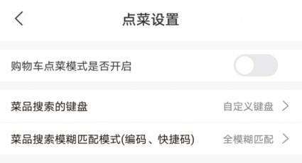 菜品搜索的键盘:默认为自定义键盘,可选自定义键盘、系统键盘(如图 2.1.2-5所示)。选择后,购物车点菜模式或列表点菜模式搜索菜品时,将显示对应的键盘。