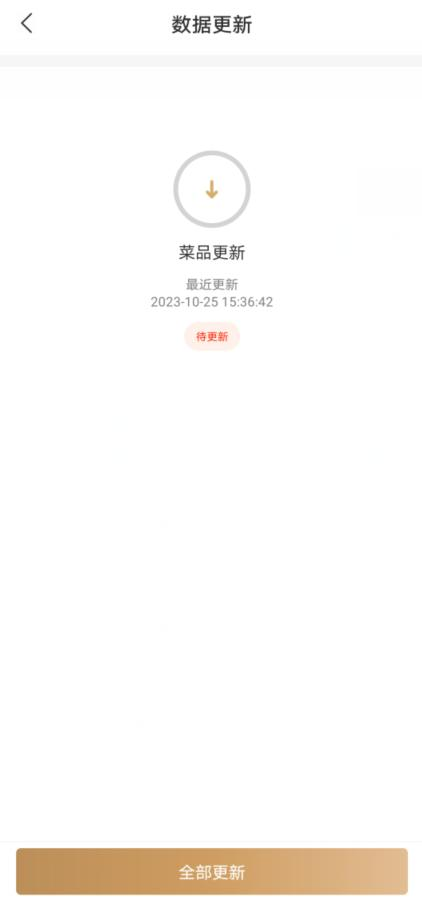 菜品更新:点击此按钮,菜品数据更新,最近更新时间刷新,“待更新”图标消失。