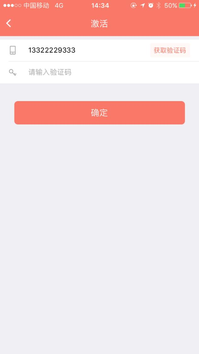转至激活界面(如图 2.2-2 所示)。在激活界面点击【获取验证码】可接收短信验证码,将