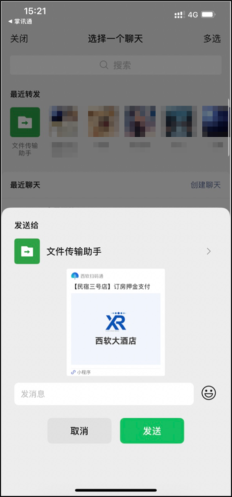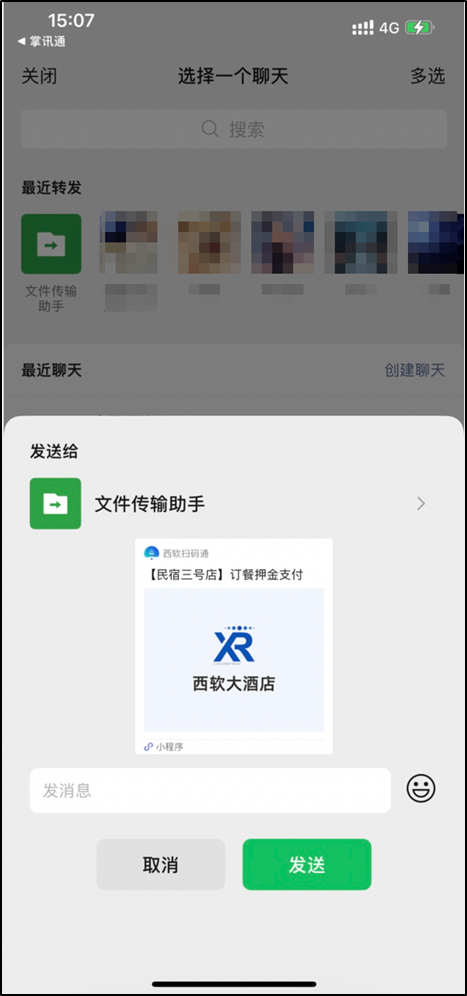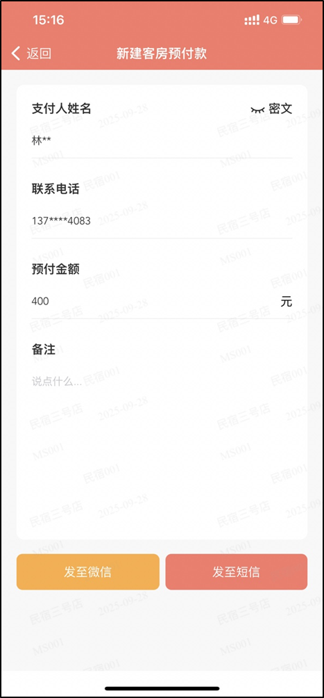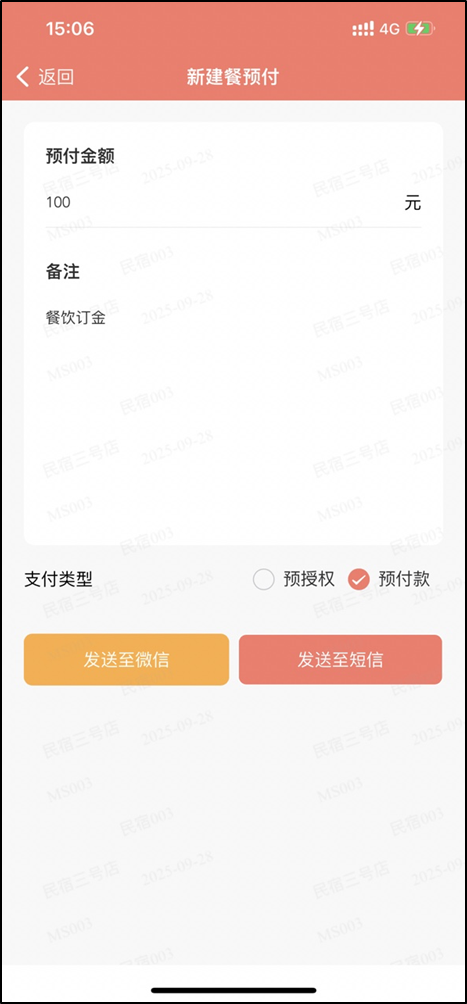 针对熟客,可以直接分享房/餐预付到对应熟客的微信里;让客人在熟悉的微信中,支付预付金;