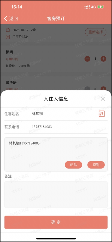- 餐饮/客房预订下文字识别功能升级(大模型识别替换原有NLP识别)