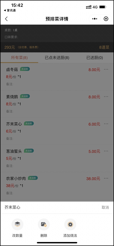 - 支持多个预订单自行开台、点菜