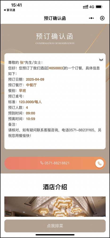 3.餐饮确认函支持让客人进行预排菜