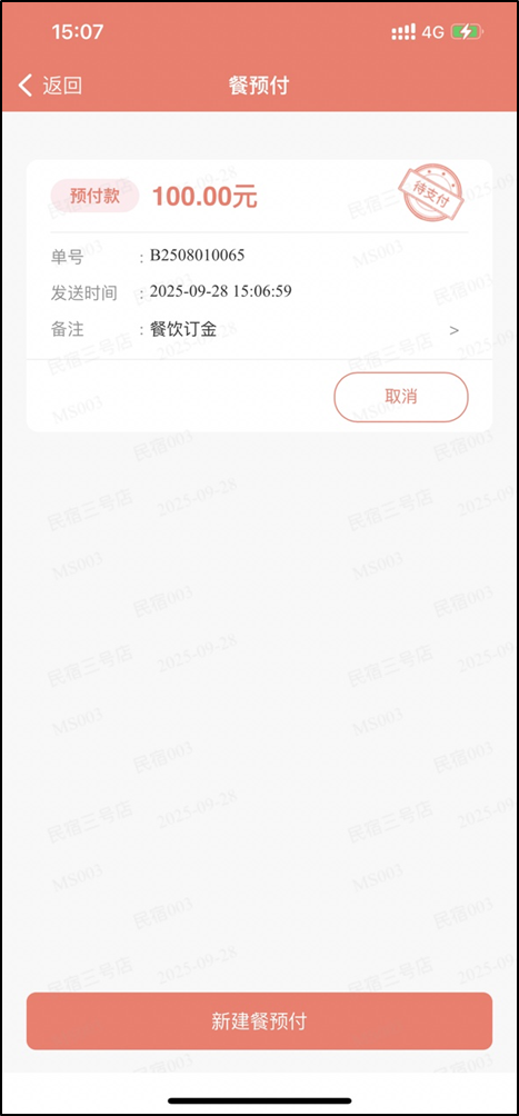 餐预付