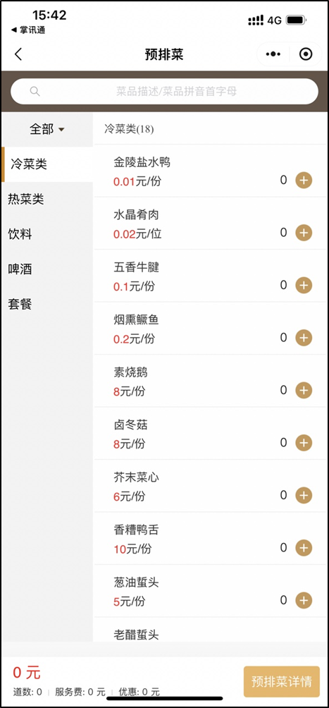 - 客人可以不到酒店就提前看菜、排菜,酒店可提前审核、沟通、备菜,提高出餐质量,降低采购成本
