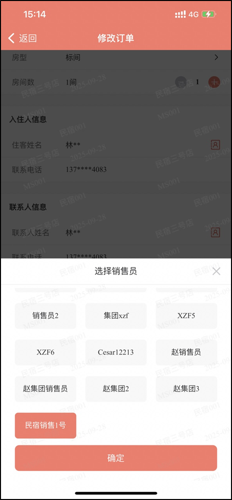 6.客房预订完成后自动关联工号对应销售员